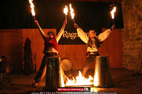 Im Burginneren waren Programmpunkte wie Musik von Ragnaroek oder die Vogelflugshow der Falknerei zu erleben. Samstagabend durfte man die Feuershow von Forzarello nicht verpassen. Das Spiel mit dem Feuer, gepaart mit rhythmischen Klängen und akrobatischen Einlagen ließ manchen Atem stocken und einfach Staunen.